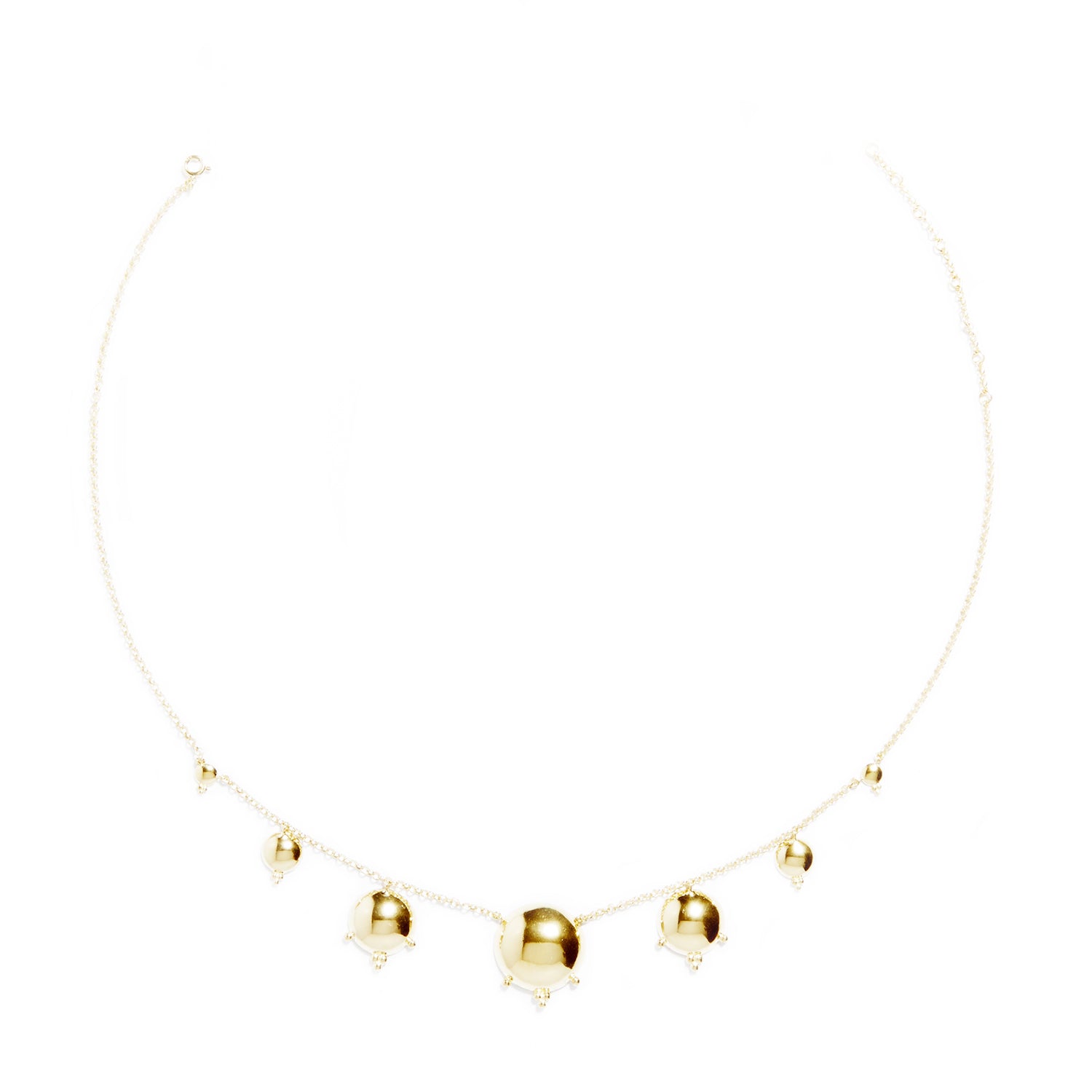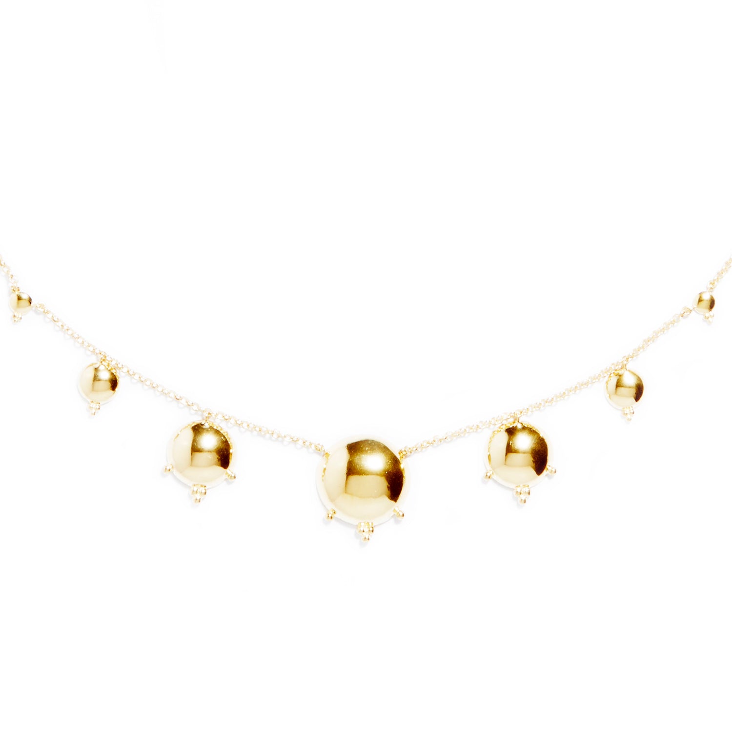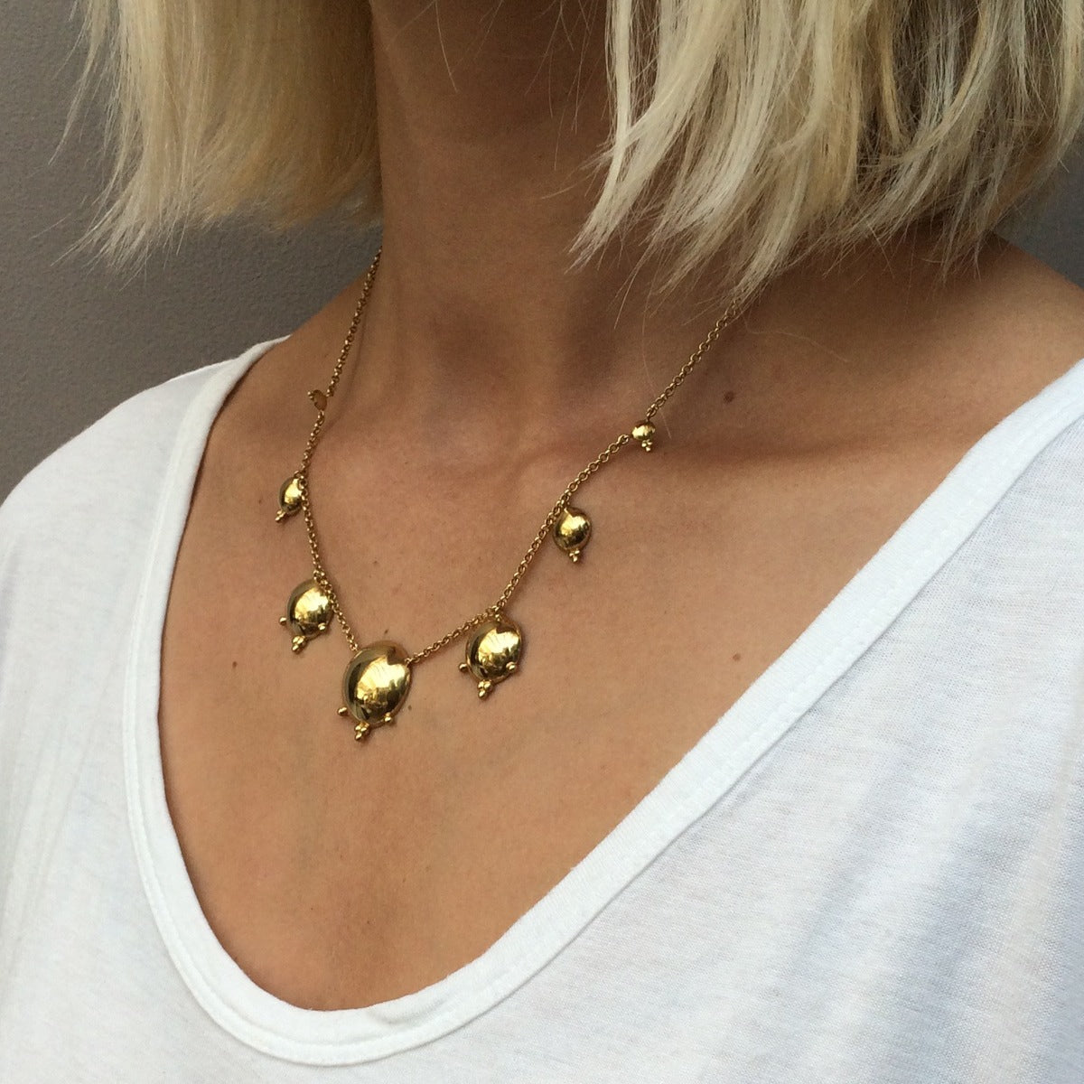 Le collier Byzance en plaqué or illumine le décolleté avec ses délicates pampilles rondes aux reflets solaires. Inspiré des ornements antiques et de l’élégance byzantine, il habille le cou avec subtilité tout en apportant une touche précieuse et lumineuse.