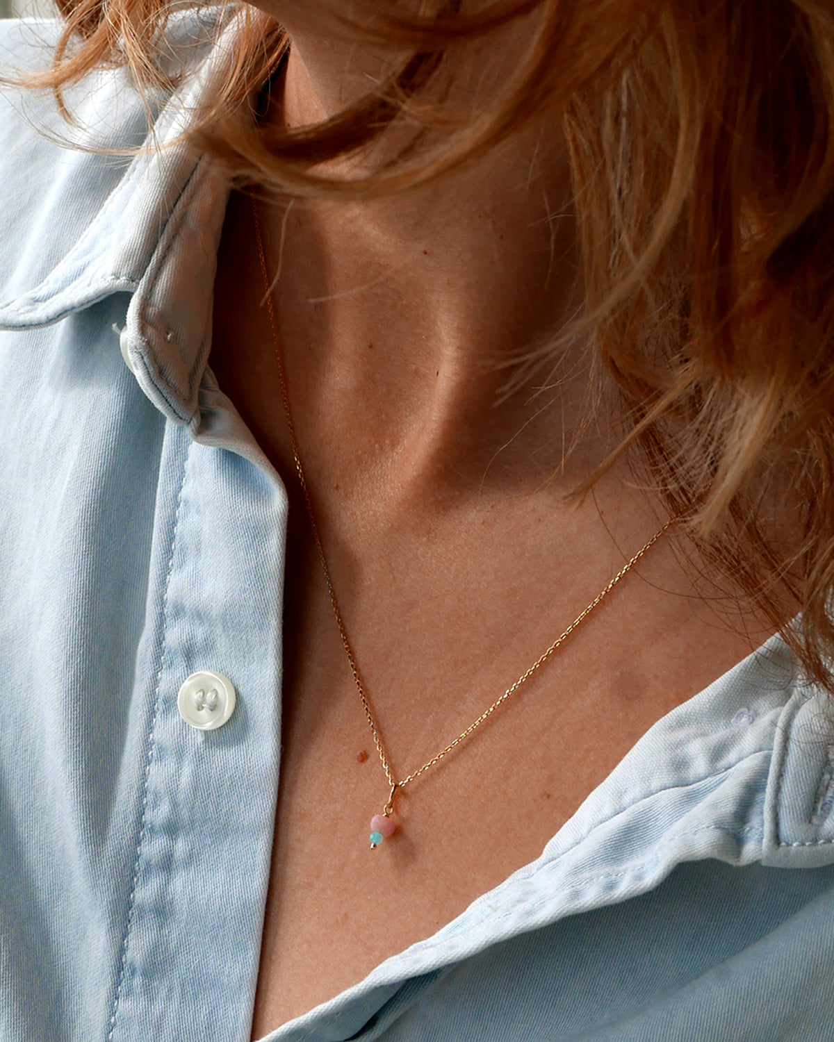 Intense et vibrant, ce pendentif associe la fraîcheur de l’amazonite à la profondeur du lapis-lazuli.